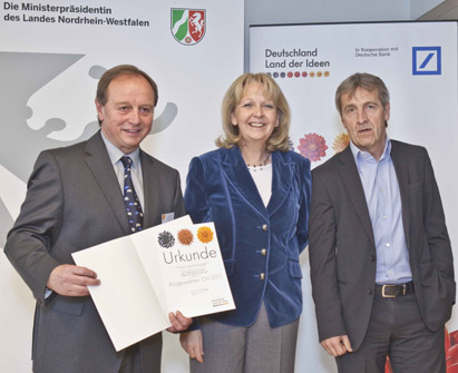 Bei einem Empfang in der Düsseldorfer Staatskanzlei überreichte NRW-Ministerpräsidentin Hannelore Kraft dem gemeinnützigen Verein „Klasse in Sport – Initiative für täglichen Schulsport e.V.“ (KiS) die 365 Orte-Urkunde von „Deutschland – Land der Ideen“. Die Initiative von Bundesregierung und deutscher Wirtschaft (Schirmherr: Bundespräsident Christian Wulf) hatte KiS die Auszeichnung „Ausgewählter Ort 2011“ verliehen. Die offizielle Preisübergabe erfolgt am 4. Juni 2011 in Hamburg.