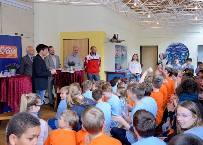 „Wir sind seit 2008 offizieller Förderer der Initiative ‚Klasse in Sport’, weil neben einer gesunden und ausgewogenen Ernährung vor allem ausreichende Bewegung für die Entwicklung der Kinder wichtig ist. Erwachsenenkrankheiten wie Adipositas, Rückenleiden oder Bluthochdruck haben ihren Ursprung meist in der Jugend. Dagegen wollen wir als Lebensmittelhändler etwas unternehmen“, so Marco Sandner, Pressesprecher der REWE Group. Für die Waldschule bedeutet das nun, dass ab sofort mehr Bewegung in den Schulalltag und mehr Schulsport ins freiwillige Programm genommen wird. „Es ist uns ein Kernanliegen, die Freude an Sport und Spiel unter gesundheitlichen und sozialen Aspekten zu fördern. Darum hat die Unterstützung des Projekts Klasse im Sport einen hohen Stellenwert für uns“, sagt Rektor Jan-Peter Meier.