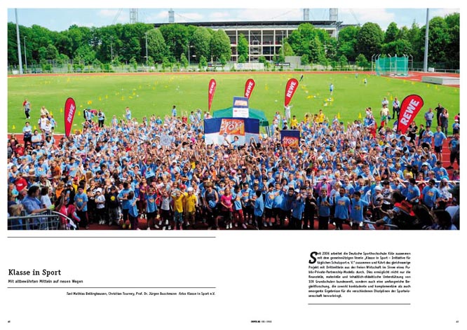 „Klasse in Sport“ richtet sich an Grundschulen mit Ganztag, bevorzugt in sozio-ökonomisch schlechter gestellten Regionen. Die finanzielle, materielle und inhaltlich-didaktische Unterstützung soll verbindlich dazu eingesetzt werden, die Schule in eine ganzheitlich bewegungsfreudige Einrichtung zu verändern. Das bedingt eine Akzeptanz und Umsetzung durch das komplette Kollegium. Unsere laufenden Untersuchungen und Feedbackgespräche mit langjährigen Teilnehmerschulen bestätigen die positive Wirkung auf die Kinder, deren Sozialverhalten und dere Hinwendung zu einem Aktiven Lebensstil. Ebenso gelingt die Einbeziehung der Eltern besser.